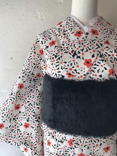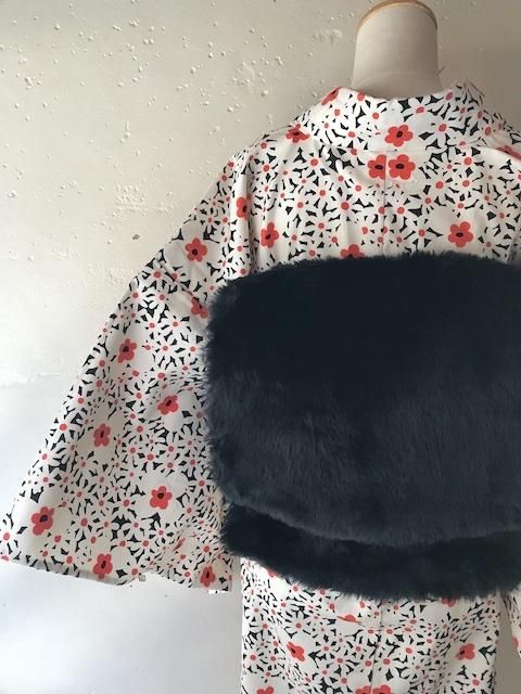 寒い時期ならではの、モフモフフェイクファーのつくり帯です。