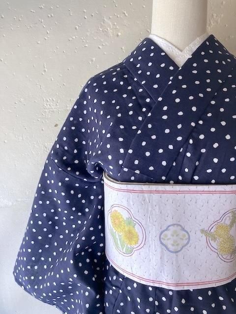 ネイビーに手描き風、ゆるめのドット。