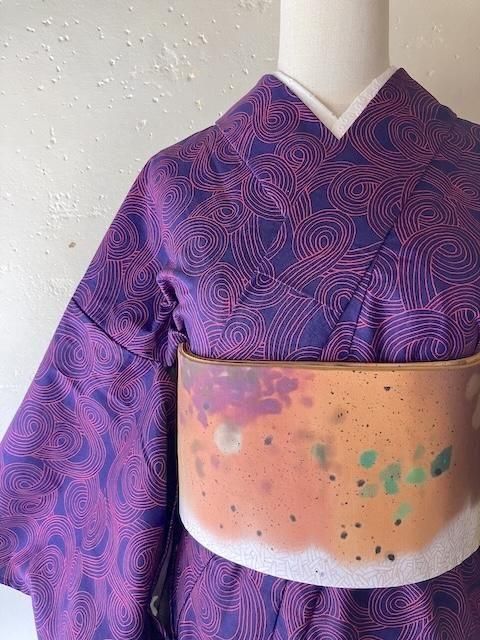 名古屋帯 ツイルペイズリー パープルブラウン
