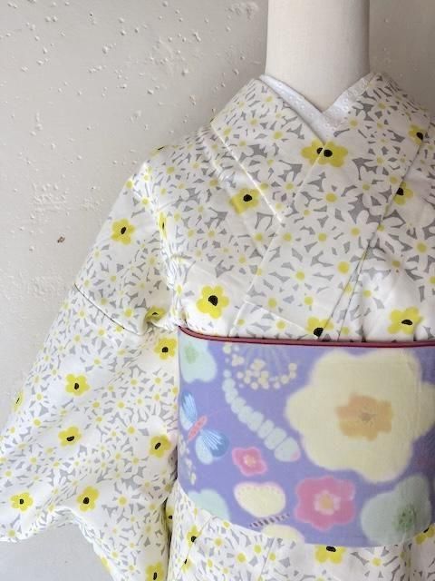お花の真ん中に黒が使われているので、濃い色の帯を持ってきても