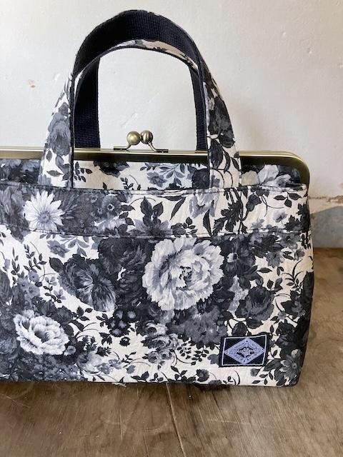 がまぐち手提げ ジャカード地紋ブーケ モノトーン