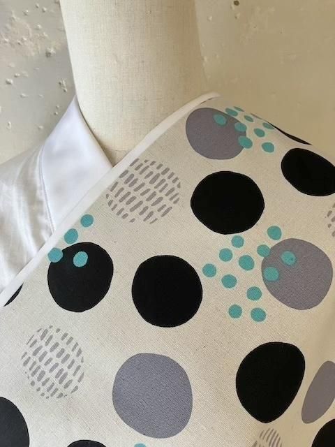 モノトーンのドットと、それより小さなターコイズグリーンのドット。