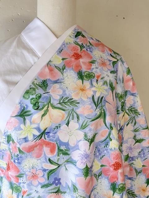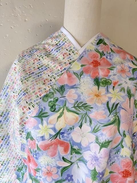 着る人のみならず見る人の気持ちまで上向けてくれそうな、明るくカラフルな柄です。