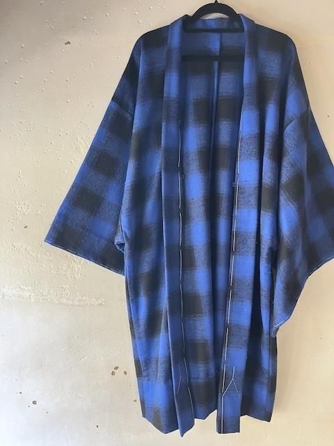 メンズ羽織 ウール千鳥格子 ブルーグレー