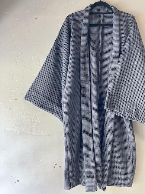 メンズ羽織 ウール千鳥格子 キナリグレー