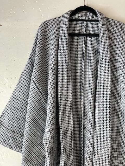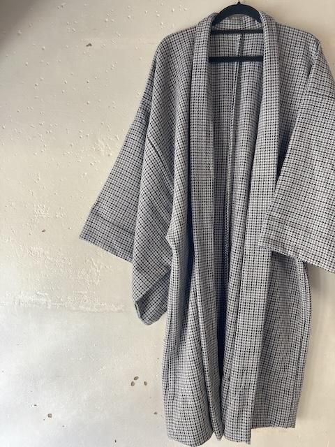 メンズ羽織 ウール千鳥格子 キナリグレー