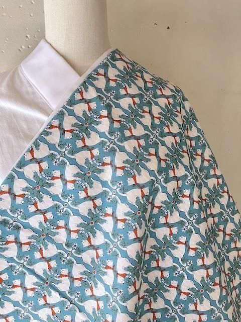 みずいろ地に、向き合うねこの連なる幾何学模様。