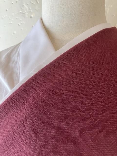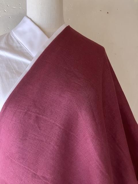 可能な生地 麻の赤系色無地