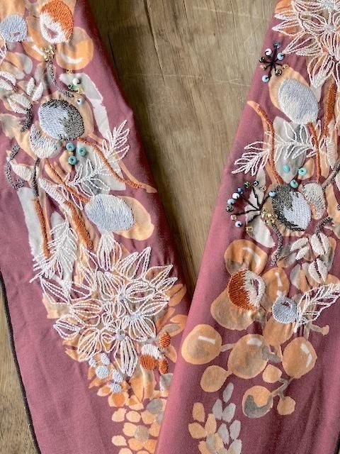 そこにさらに刺繍、そしてビーズを縫い付けて製作された