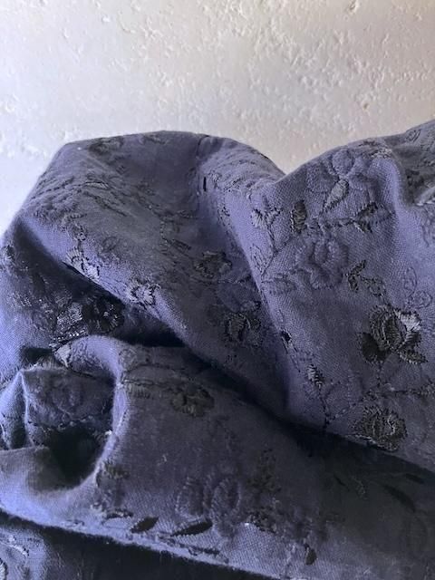 同色糸とツヤツヤ黒糸の2色刺繍の花柄。