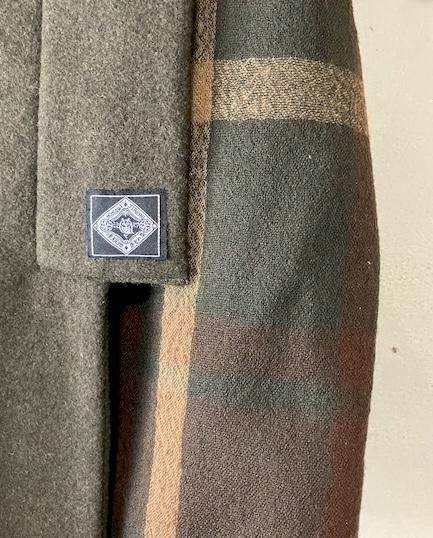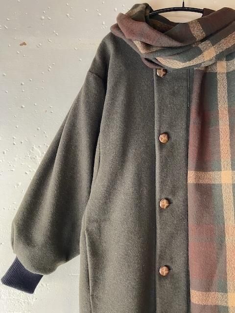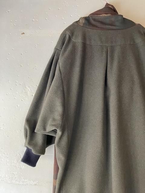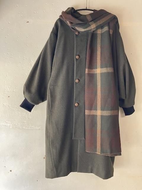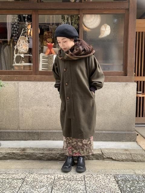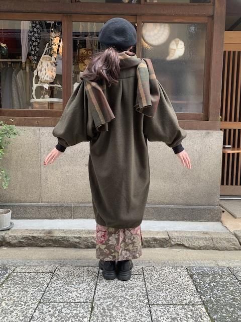 衿もとはショール(マフラー)と一体になっていて、コート本体は衣紋の外側におさまりつつも